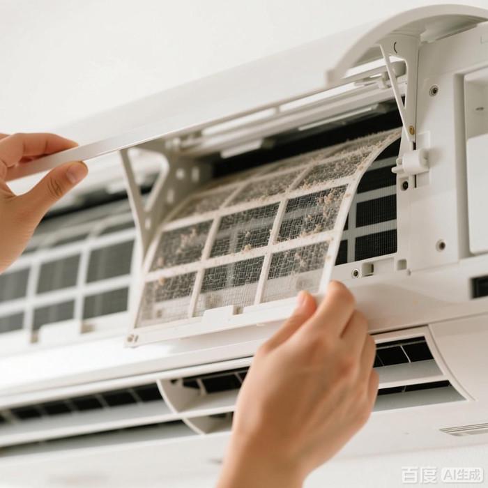 断电后,轻按或向上推开空调面板,即可看到积满灰尘的滤网。将其轻轻抽出,用清水冲洗(若油污较重可用中性清洁剂辅助),置于阴凉处彻底晾干。切记勿暴晒或烘干,以免滤网变形。